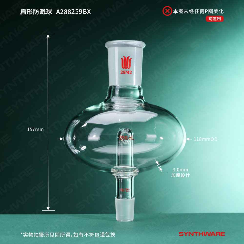旋蒸类 > 防溅球 > 常规-扁形防溅球 > SYNTHWARE > 扁形防溅球,上磨口:29/42,下磨口:19/22,250ml A288259BX