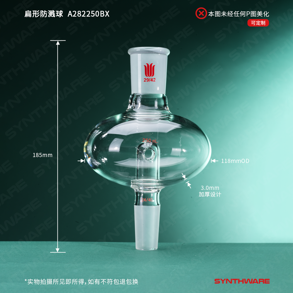 旋蒸类 > 防溅球 > 常规-扁形防溅球 > SYNTHWARE > 扁形防溅球,上磨口:29/42,下磨口:24/40,250ml A282250BX