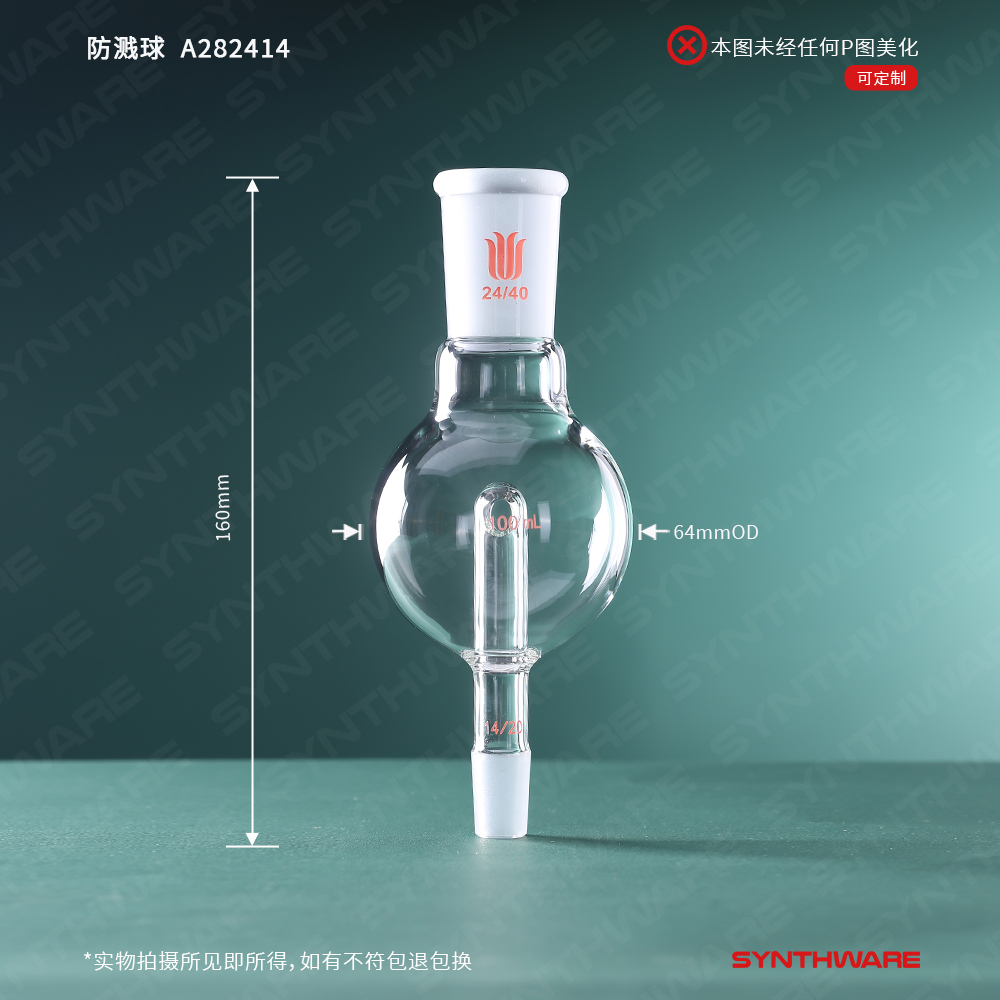 旋蒸类 > 防溅球 > 常规-圆形防溅球 > SYNTHWARE > 防溅球,上磨口:24/40,下磨口:14/20,100ml A282414