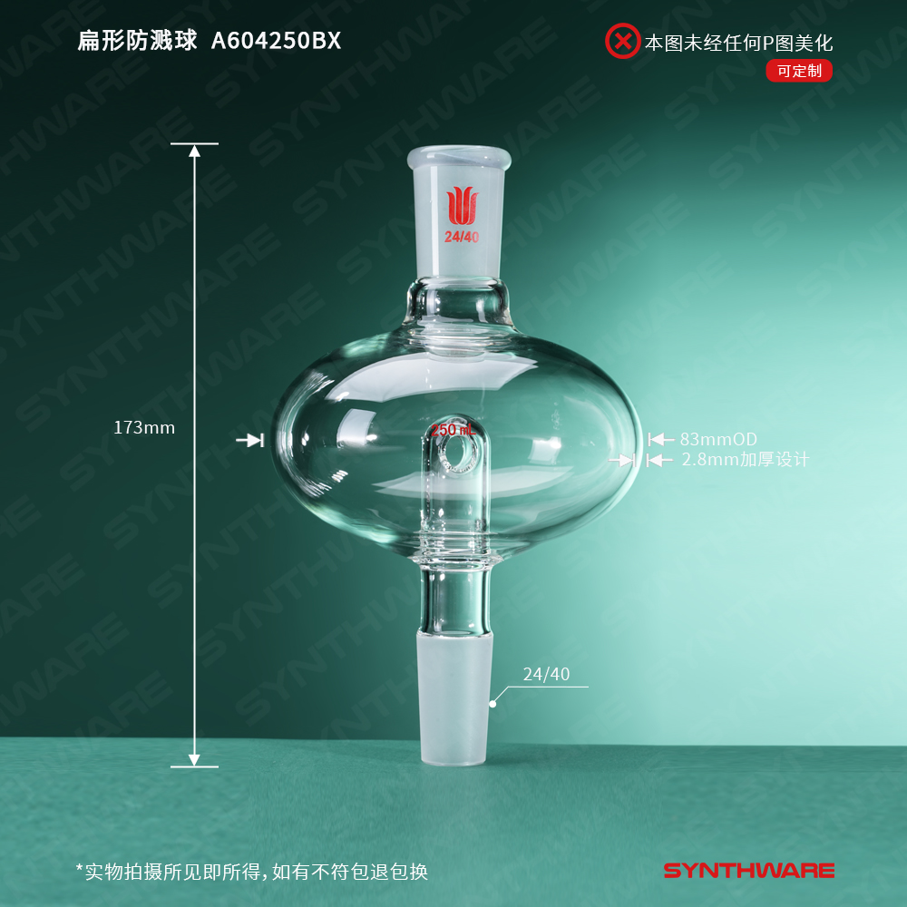 扁形球体节约旋蒸仪与球瓶之间连接空间,在内管底部有两个4mm的回流孔,该孔可使球体内的溶液回流到要旋蒸的蒸发瓶内,本品出厂前逐一检验同心度。