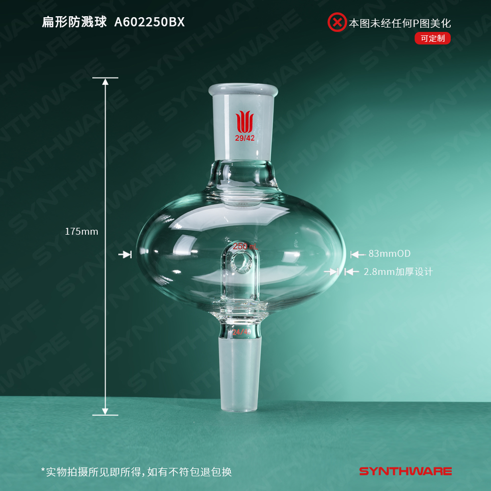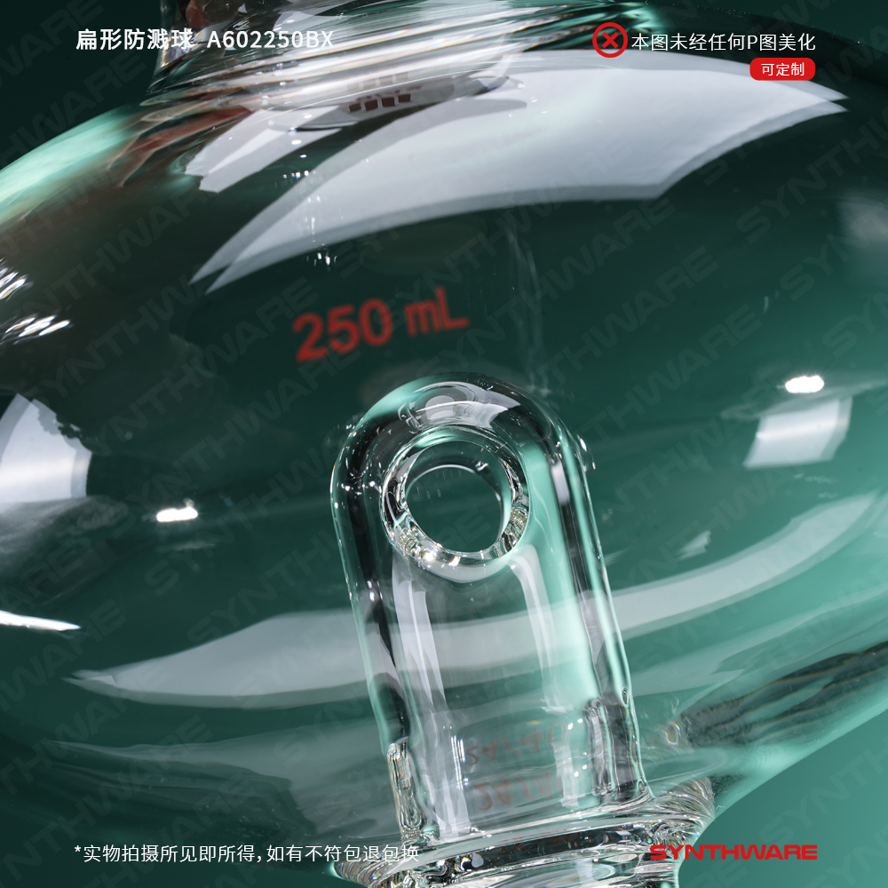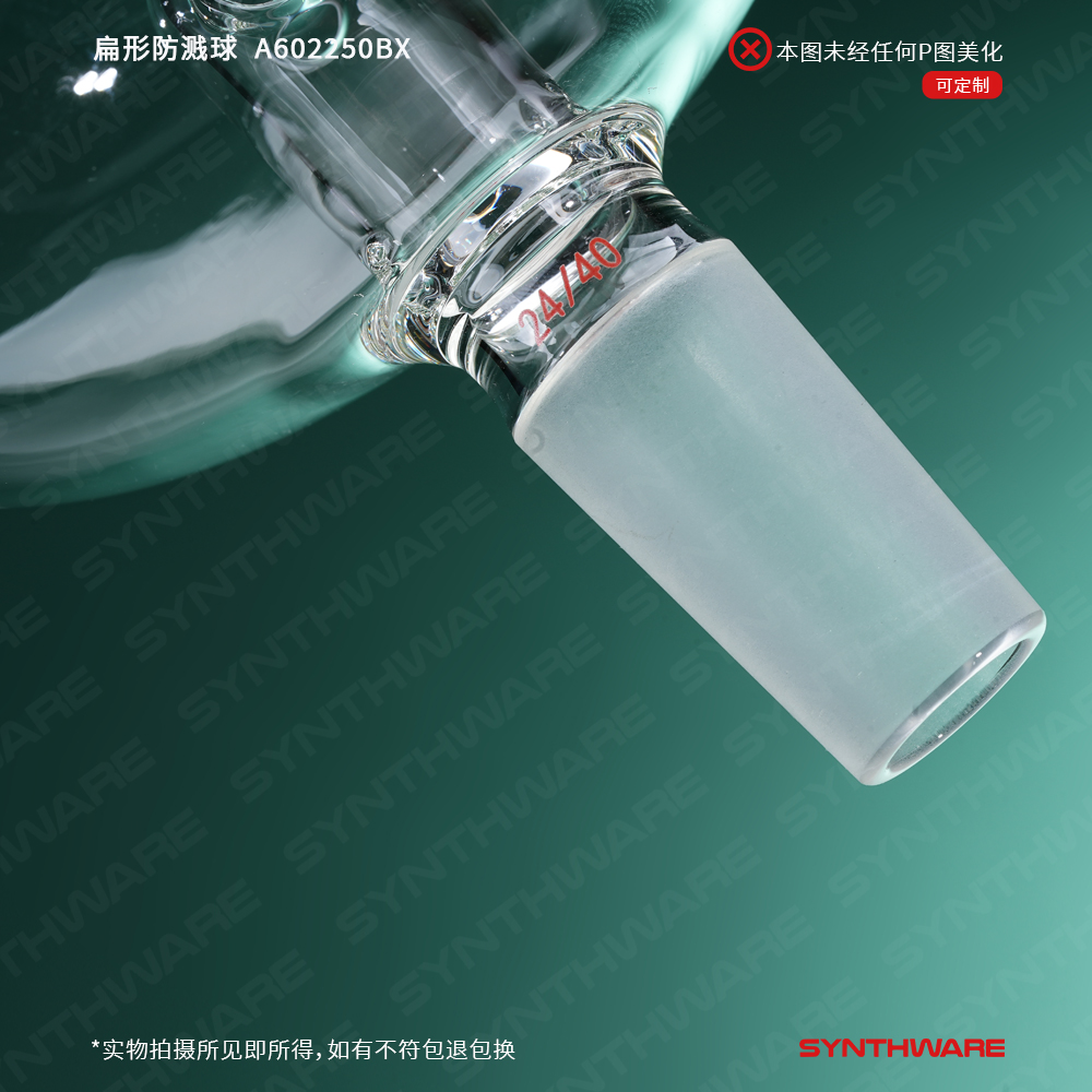 扁形球体节约旋蒸仪与球瓶之间连接空间,在内管底部有两个4mm的回流孔,该孔可使球体内的溶液回流到要旋蒸的蒸发瓶内,本品出厂前逐一检验同心度。