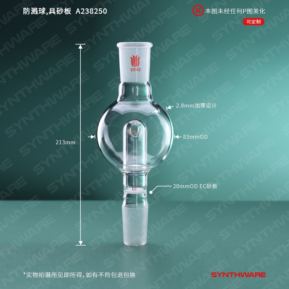 旋蒸类 > 防溅球 > 具砂板防溅球 > SYNTHWARE > 防溅球,具砂板,上磨口:29/42,下磨口:29/42,250ml A238250