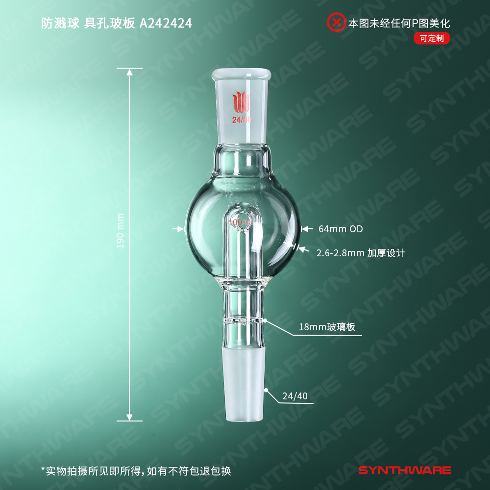 旋蒸类 > 防溅球 > 具多孔玻璃板防溅球 > SYNTHWARE > 防溅球,具孔玻板,上磨口:24/40,下磨口:24/40,100ml A242424