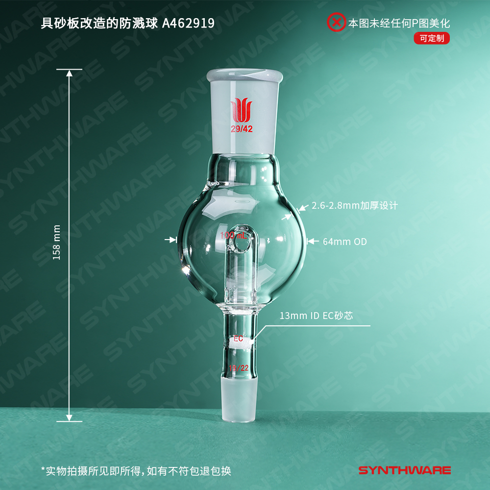 旋蒸类 > 防溅球 > 具回流孔-砂板改造 > SYNTHWARE > 具砂板改造的防溅球,29/42-19/22,100ml A462919