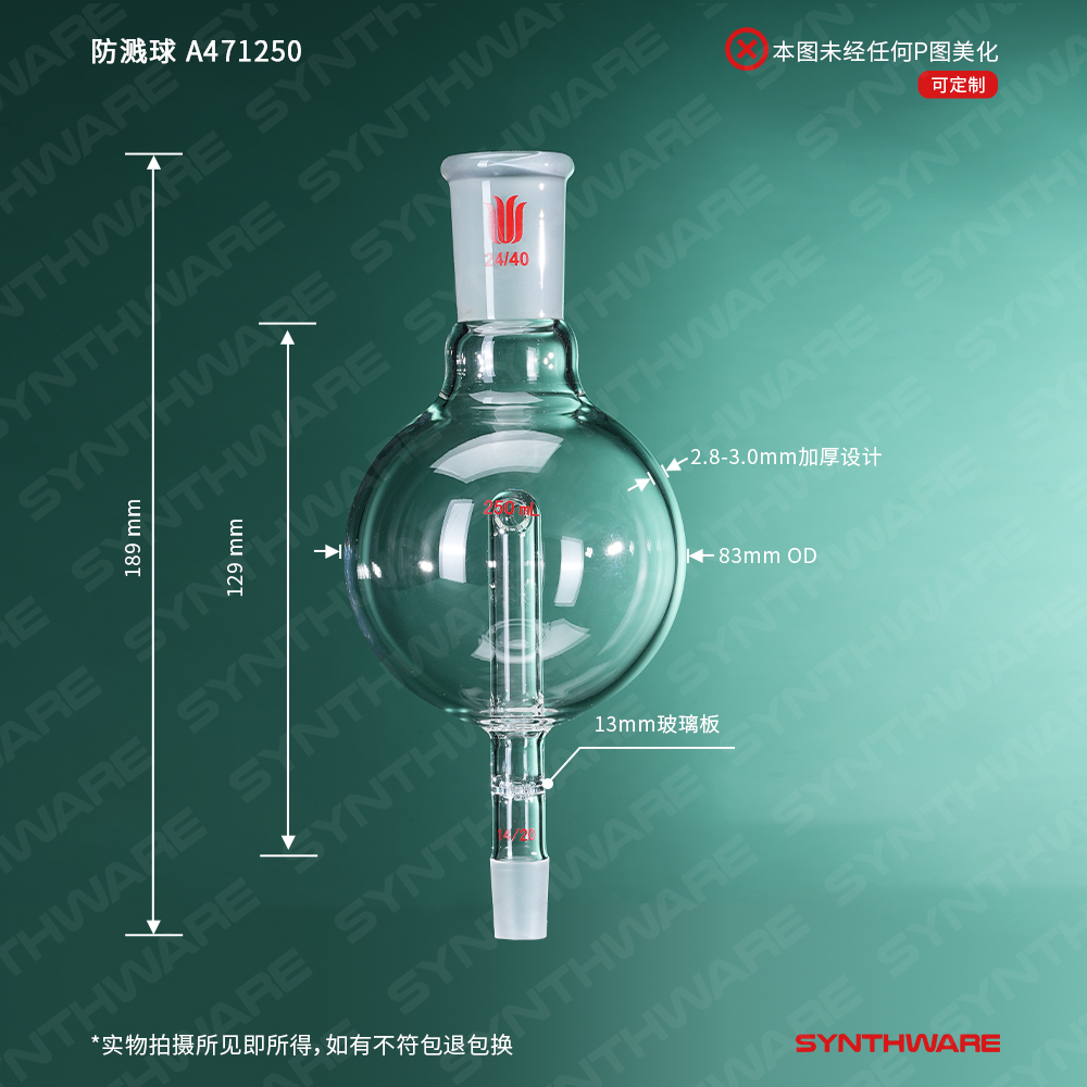 旋蒸类 > 防溅球 > 具回流孔-多孔玻璃板改造 > SYNTHWARE > 防溅球,具多孔板及回流孔,24/40-14/20,250ml A471250