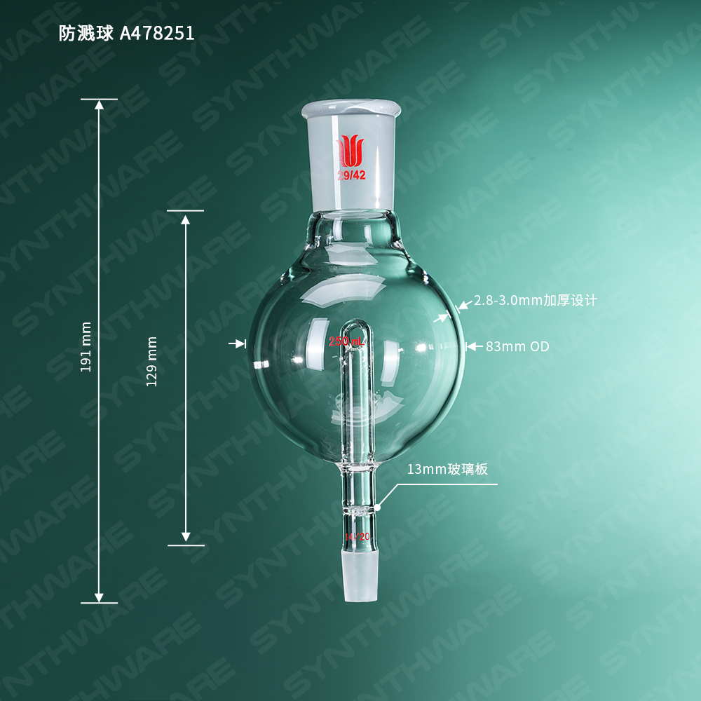 旋蒸类 > 防溅球 > 具回流孔-多孔玻璃板改造 > SYNTHWARE > 防溅球,具多孔板及回流孔,29/42-14/20,250ml A478251