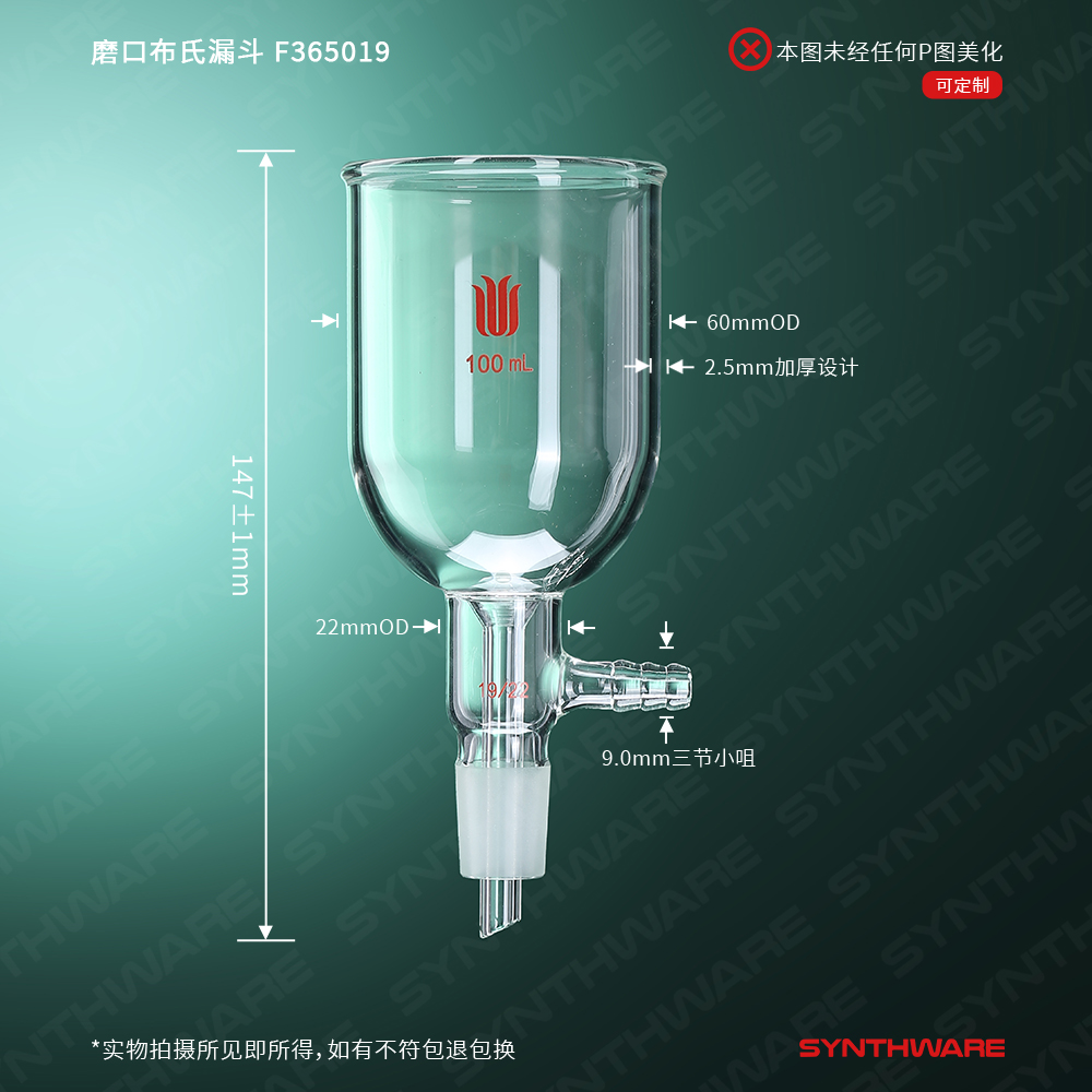 磨口布什漏斗,100ml,19/22,无砂芯 F365019