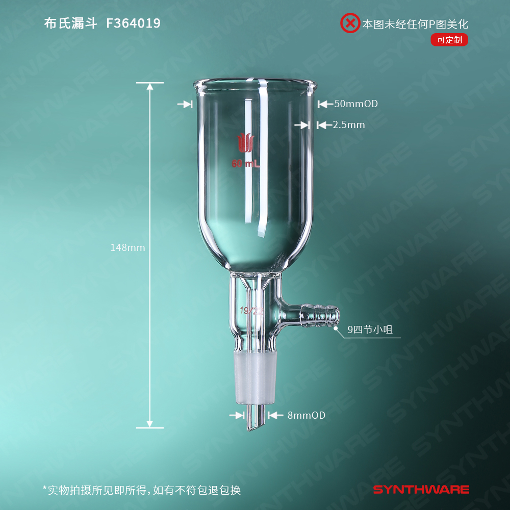 可搭配玻璃丝棉或脱脂棉过滤使用。也适用于在减压条件下大量的固体或液体加料,减压操作可使加料时间缩短一倍。