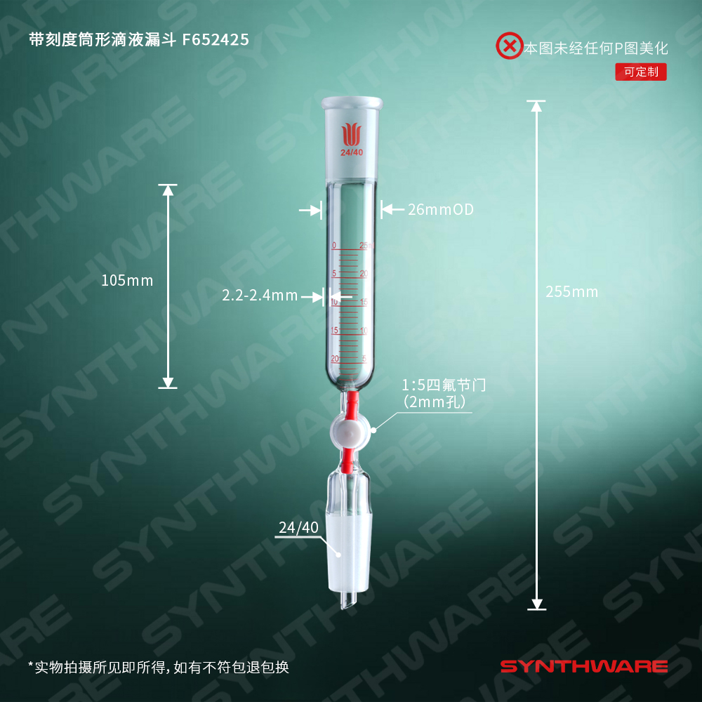 带刻度筒形滴液漏斗,磨口:24/40,容量:25ml F652425
