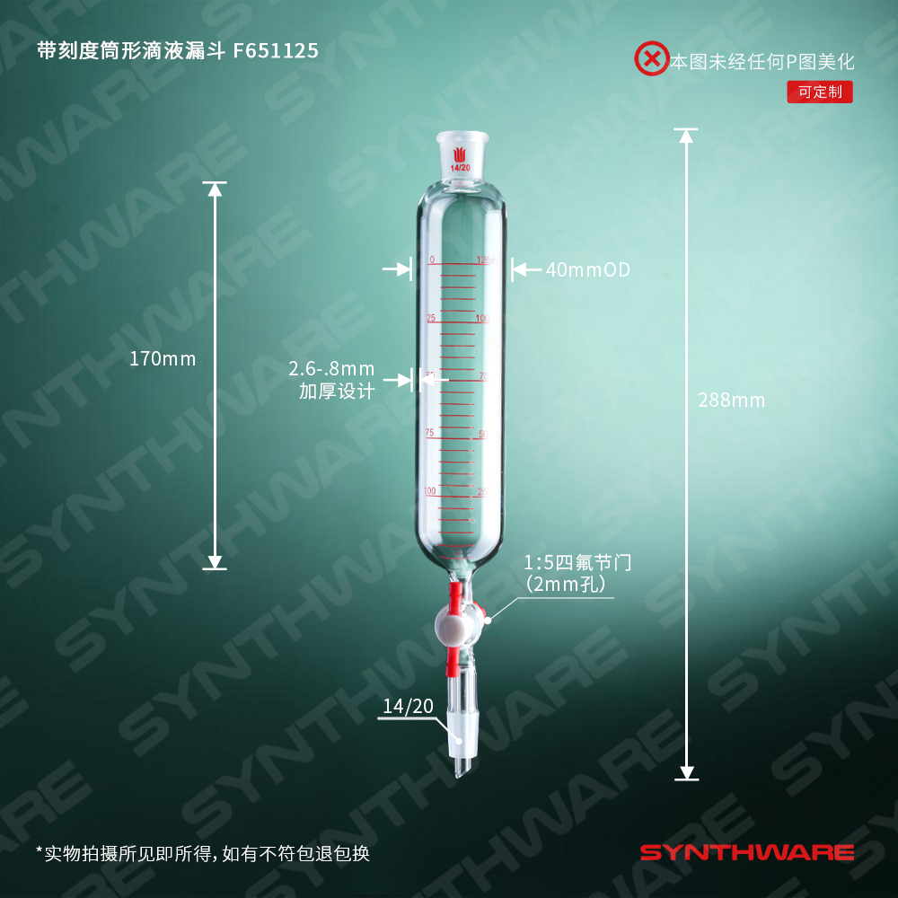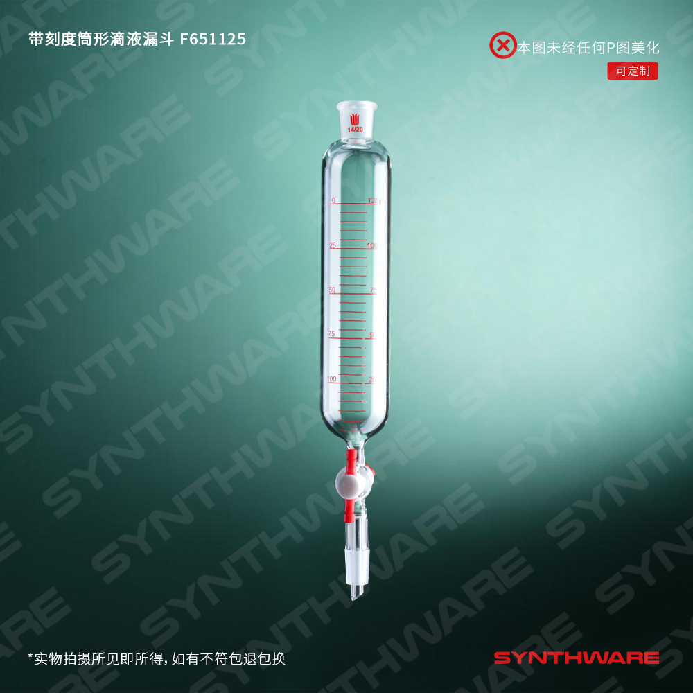 带刻度筒形滴液漏斗,磨口14/20,容量125ml F651125
