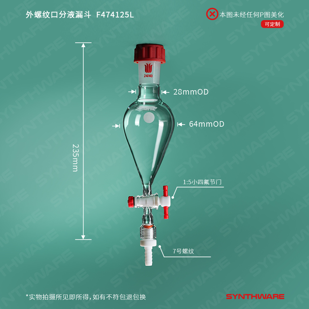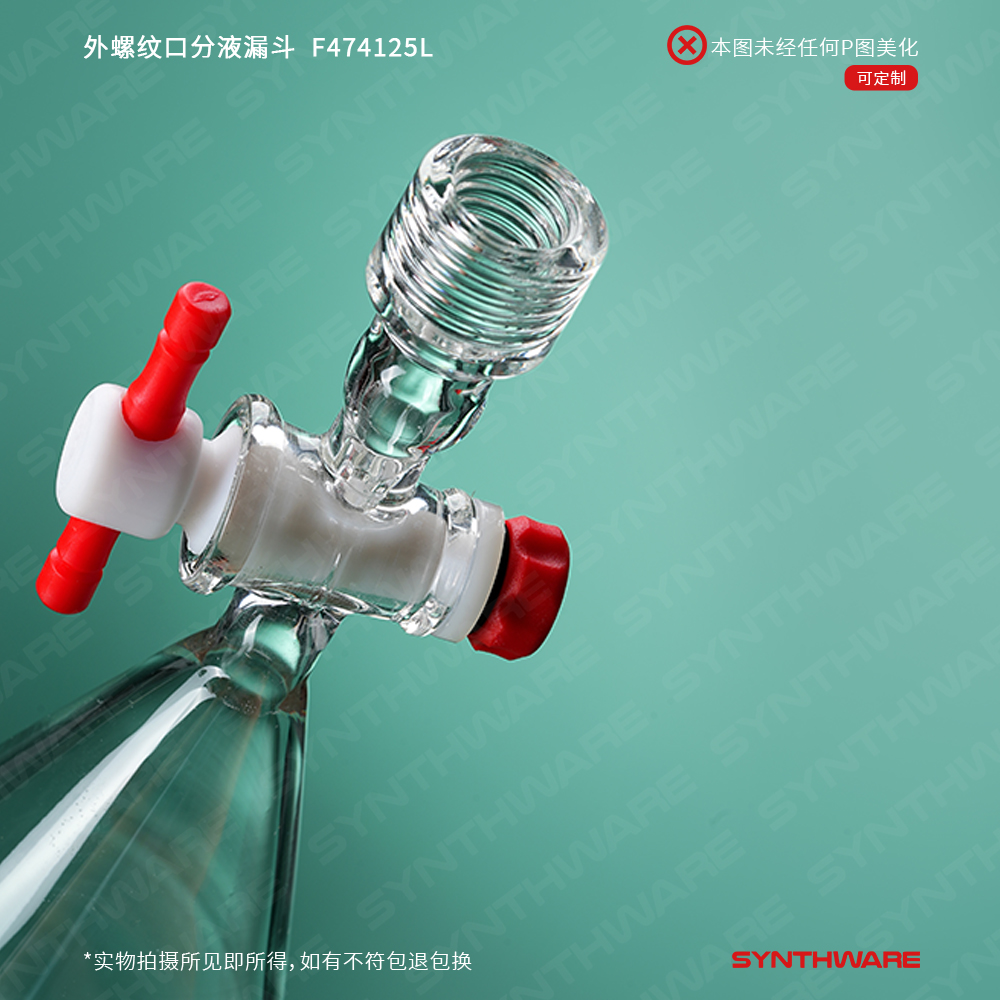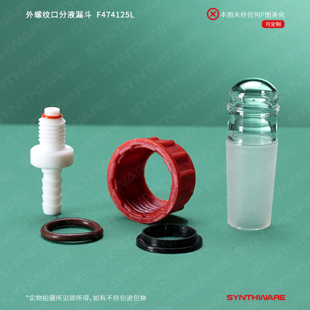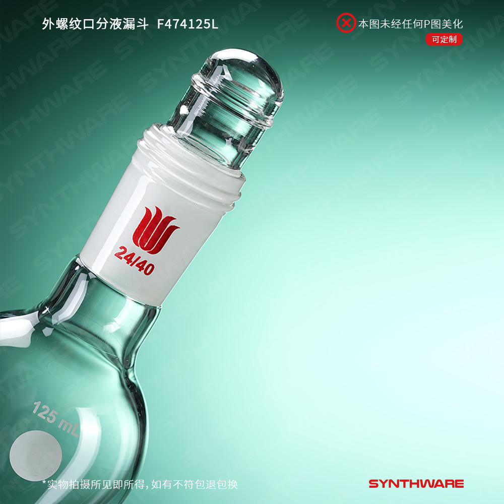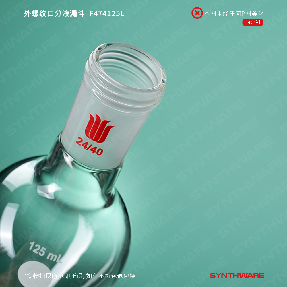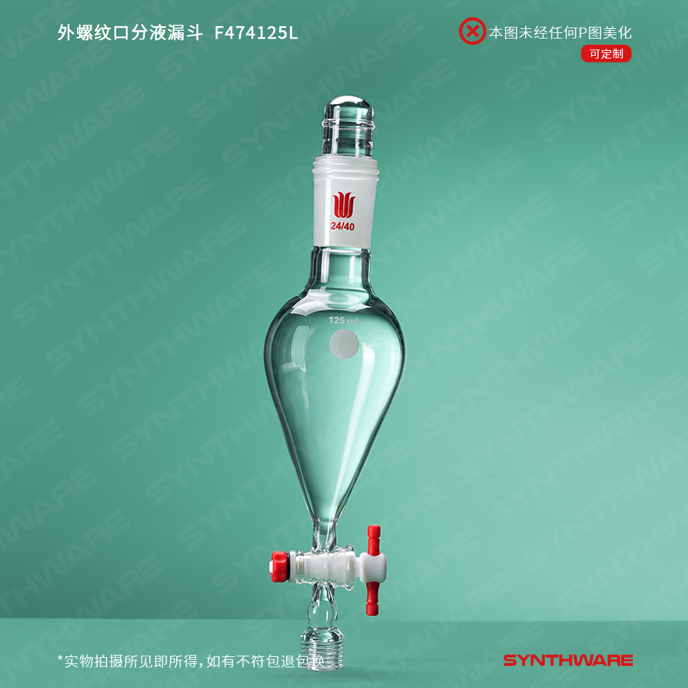外螺纹口分液漏斗,下端带可拆卸连接杆,磨口:24/40,容量125ml F474125L