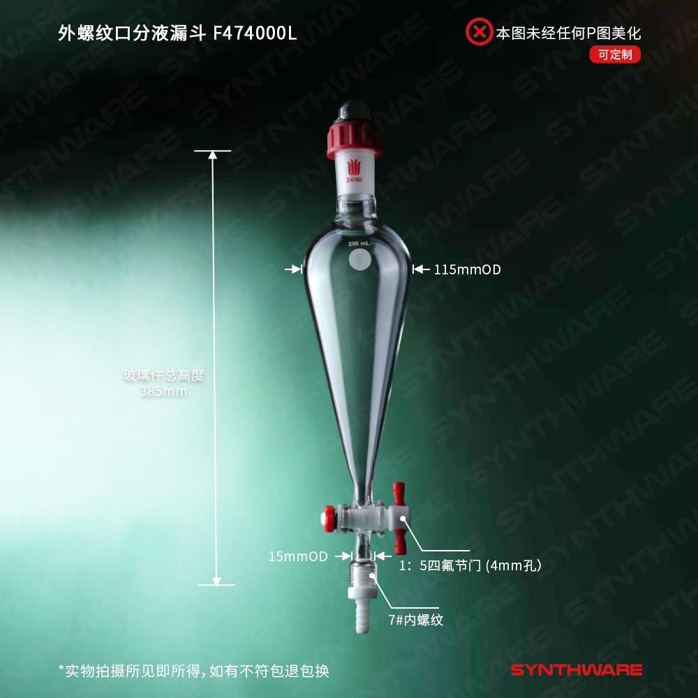 外螺纹口分液漏斗,下端带可拆卸连接杆,磨口:24/40,容量1000ml F474000L
