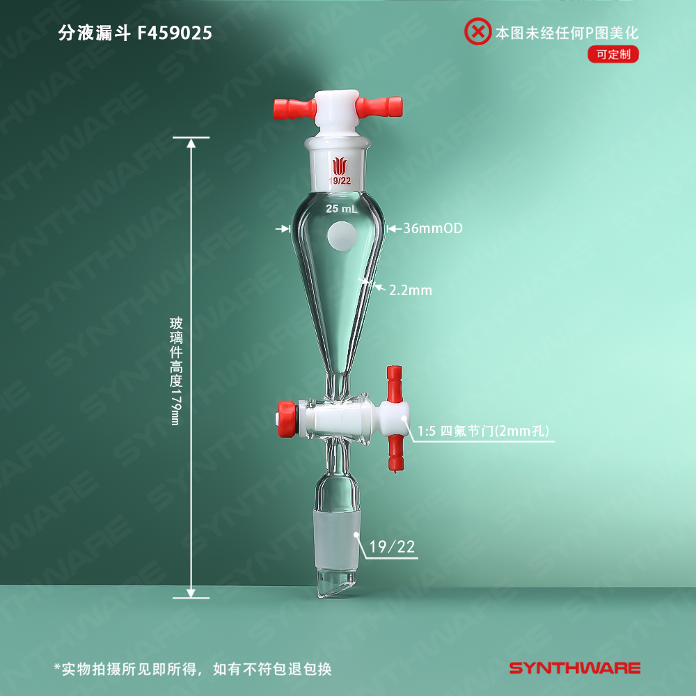 分液漏斗,上下磨口:19/22,2mm,四氟塞子,25ml F459025