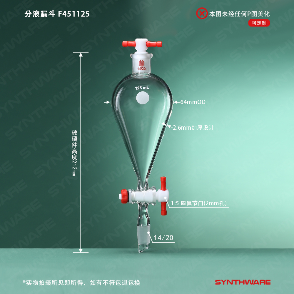 分液漏斗,上下磨口:14/20,2mm,四氟塞子,125ml F451125