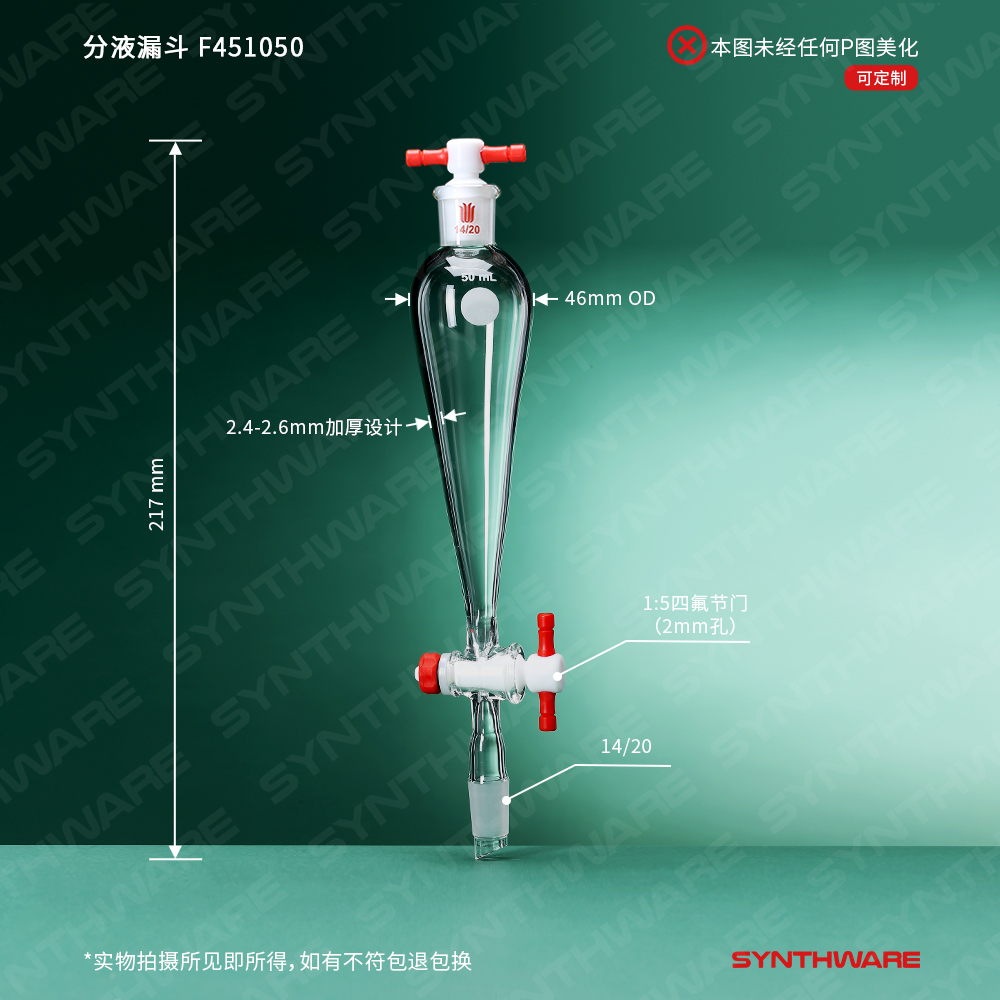 分液漏斗,上下磨口:14/20,2mm,四氟塞子,50ml F451050