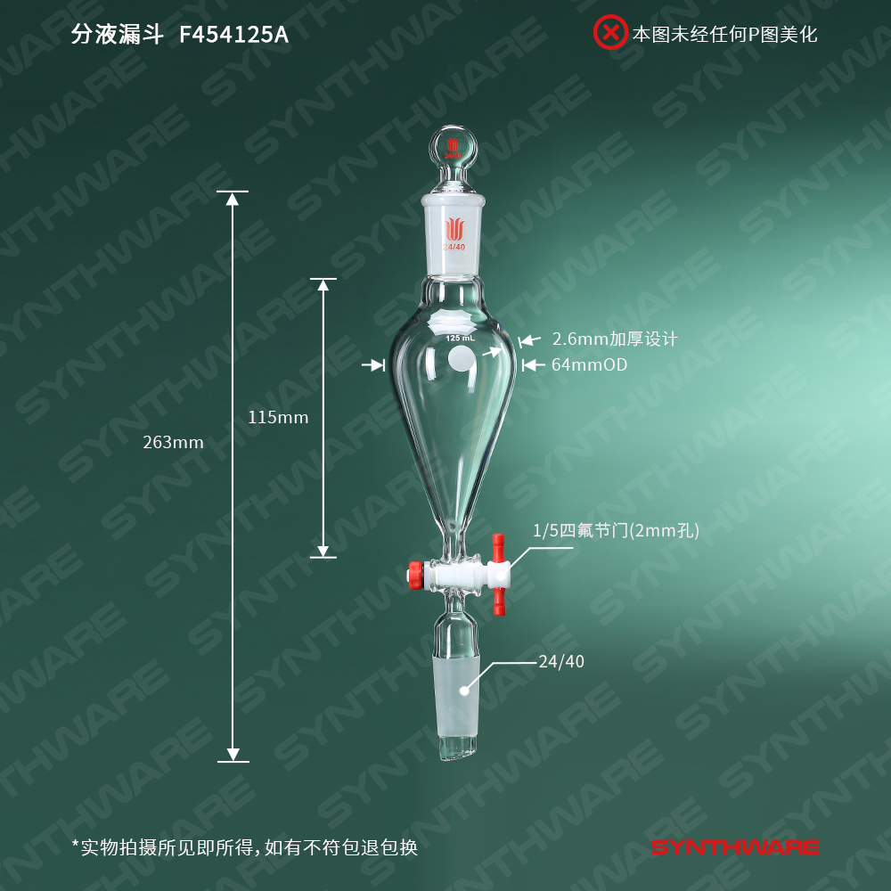 分液漏斗,上下磨口:24/40,2mm,玻璃塞子,125ml F454125A