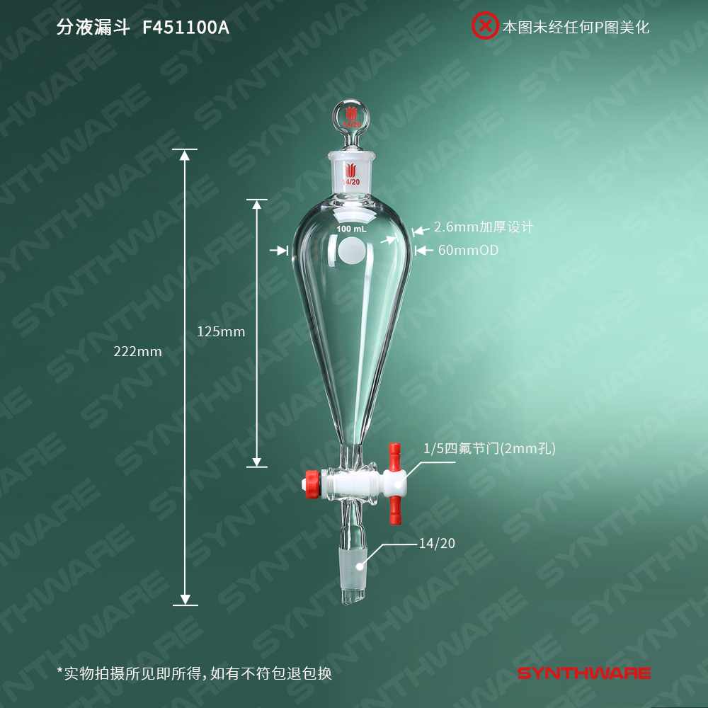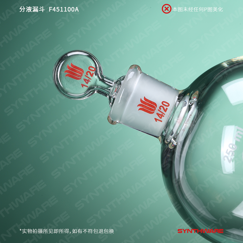 分液漏斗,上下磨口:14/20,2mm,玻璃塞子,100ml F451100A