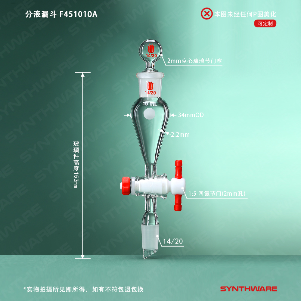 分液漏斗,上下磨口:14/20,2mm,玻璃塞子,10ml F451010A