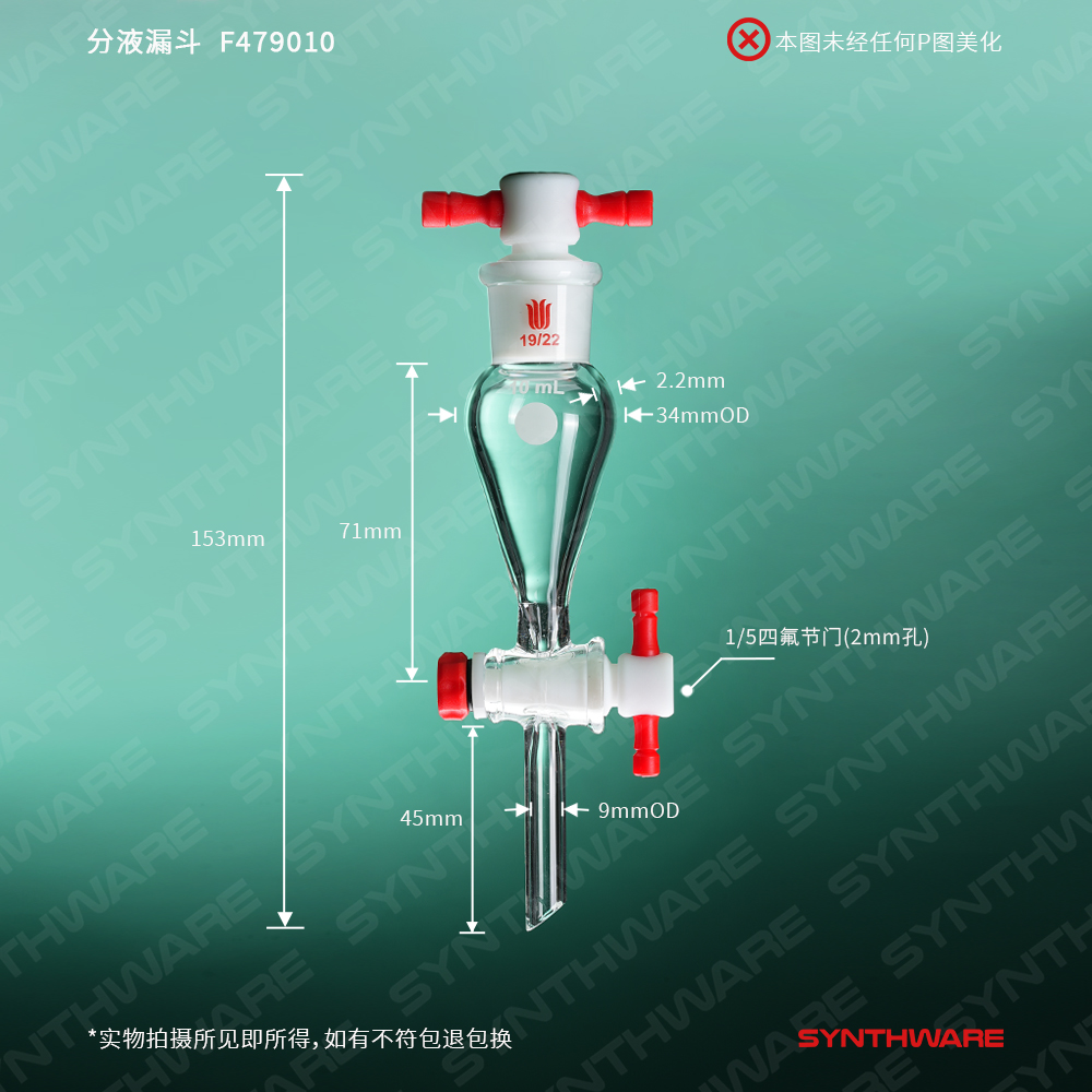 分液漏斗,上磨口:19/22四氟口塞,2mm四氟节门塞,10ml F479010