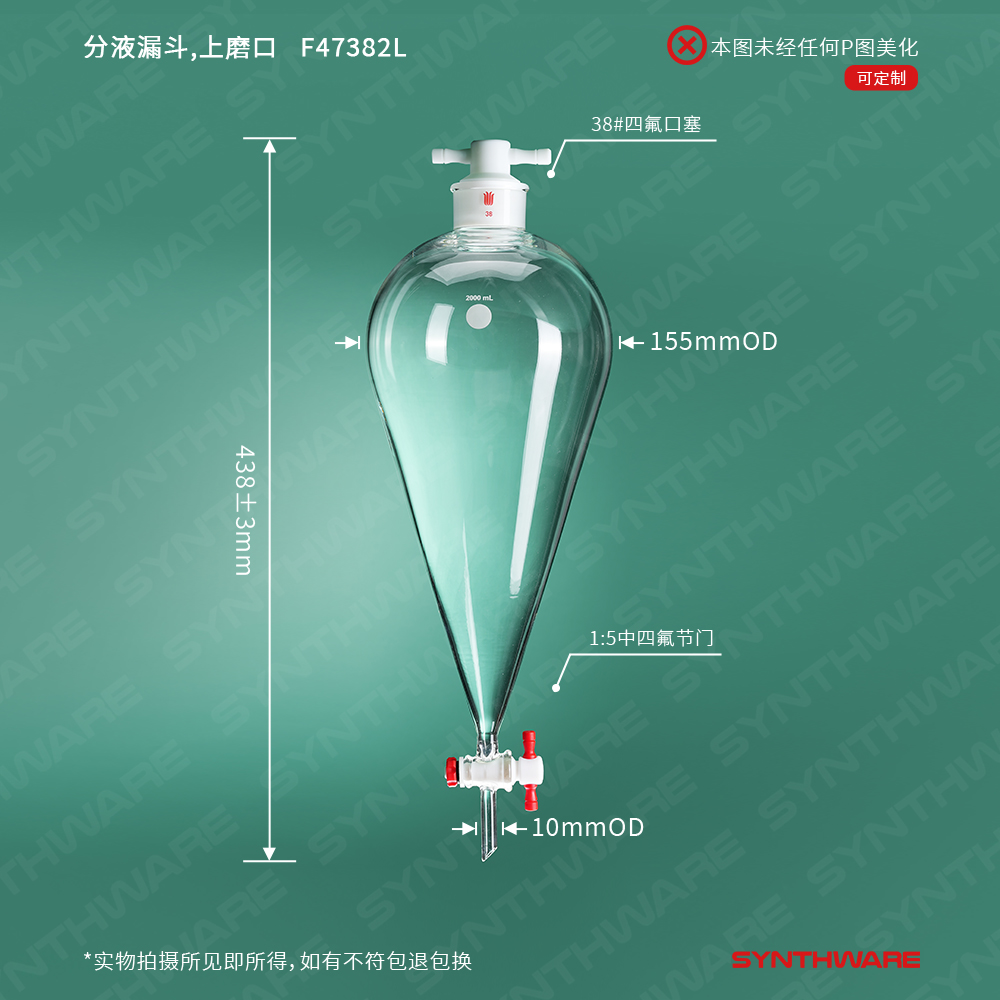 分液漏斗,上磨口:29/42四氟口塞,4mm四氟节门塞,2000ml F47292L