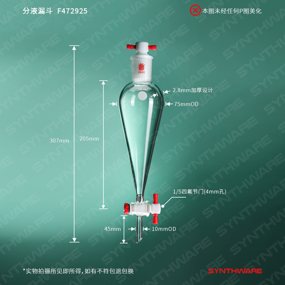 分液漏斗,上磨口:29/42四氟口塞,4mm四氟节门塞,250ml F472925