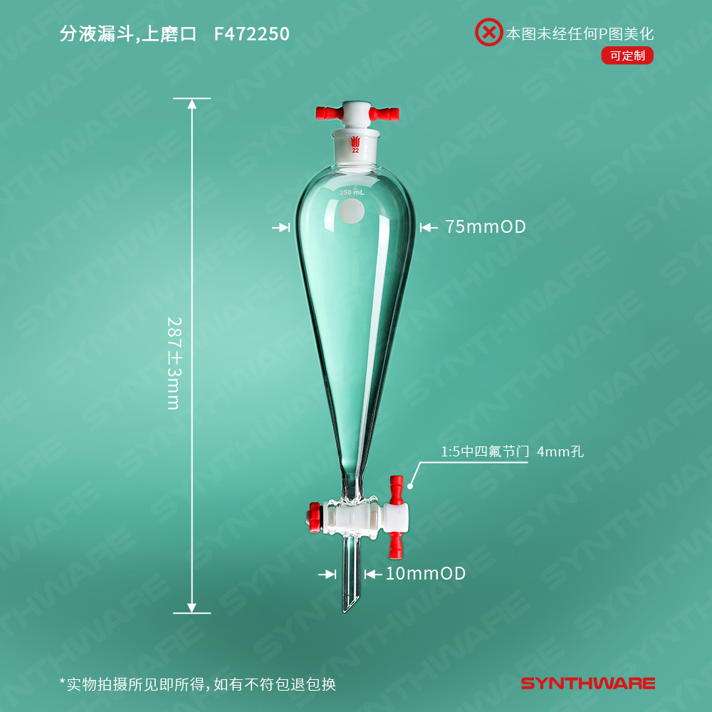 分液漏斗,上磨口:22#四氟口塞,4mm四氟节门塞,250ml F472250