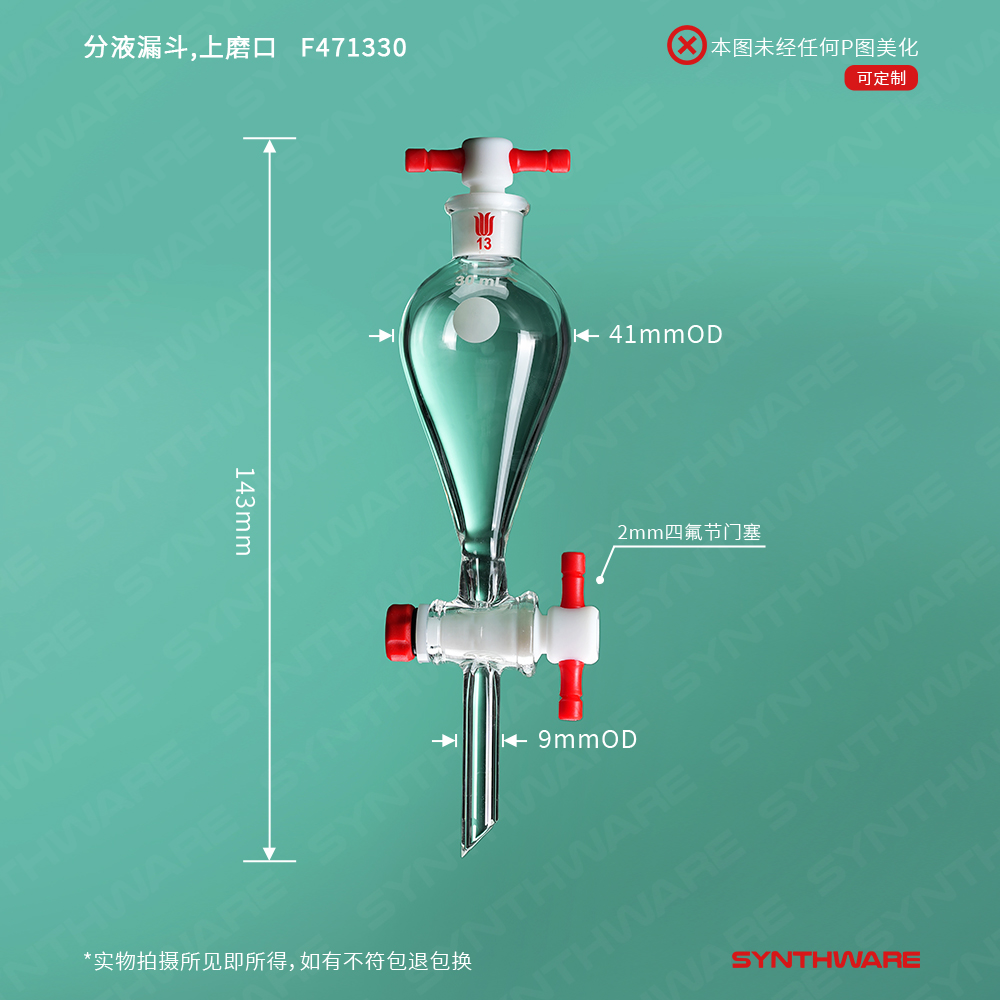 分液漏斗,上磨口:13#四氟口塞,2mm四氟节门塞,30ml F471330