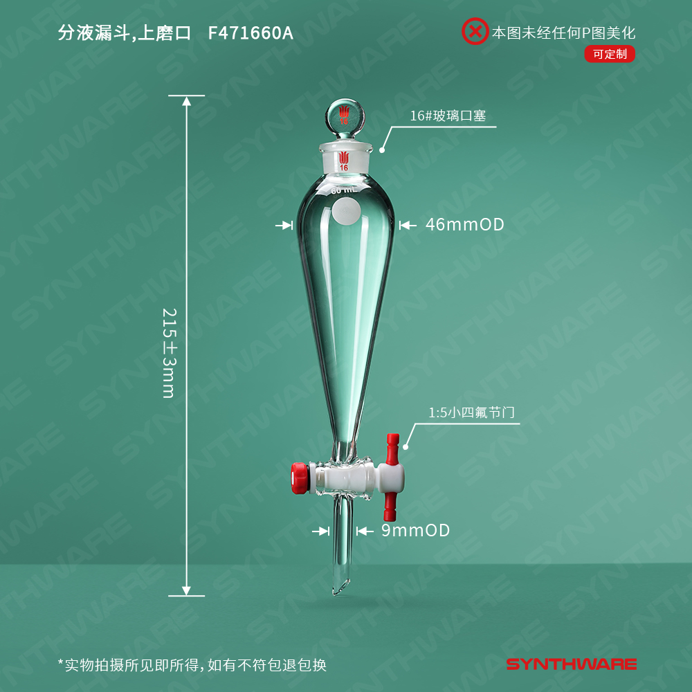 分液漏斗,上磨口:16#玻璃口塞,2mm四氟节门塞,60ml F471660A