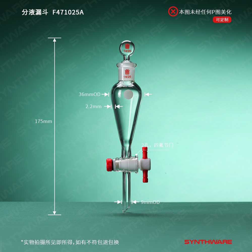 分液漏斗,上磨口:14/20玻璃口塞,2mm四氟节门塞,25ml F471025A