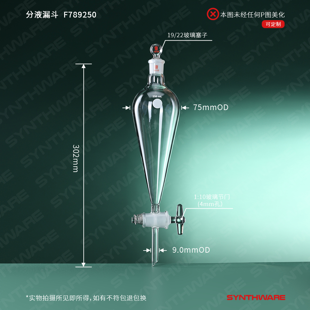 分液漏斗,玻璃节门,250ml,19/22玻璃塞子 F789250