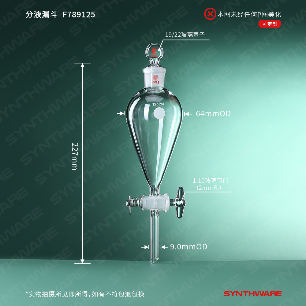 分液漏斗,玻璃节门,125ml,19/22玻璃塞子 F789125