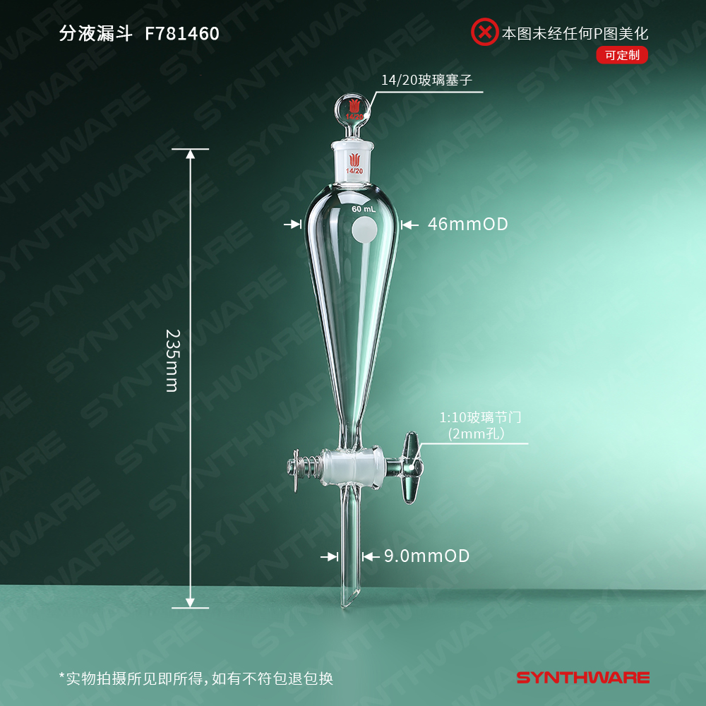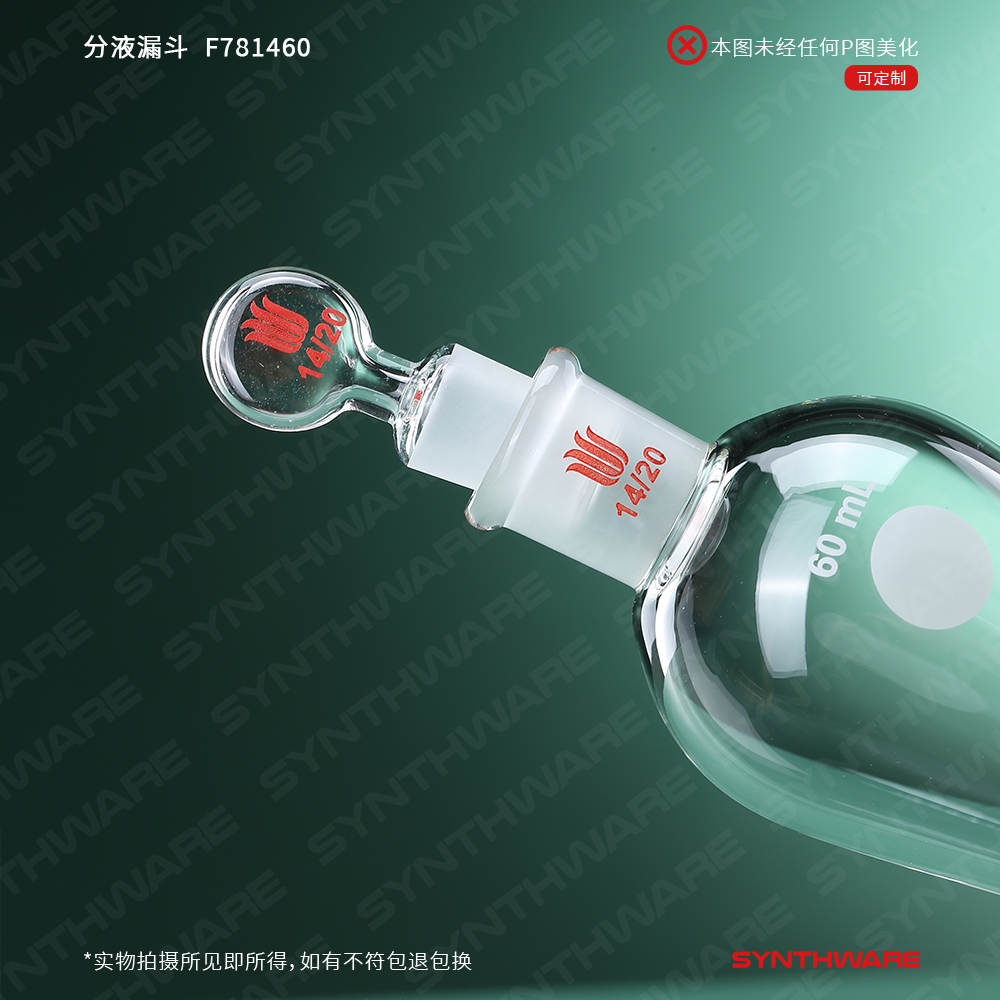 分液漏斗,玻璃节门,60ml,14/20玻璃塞子 F781460