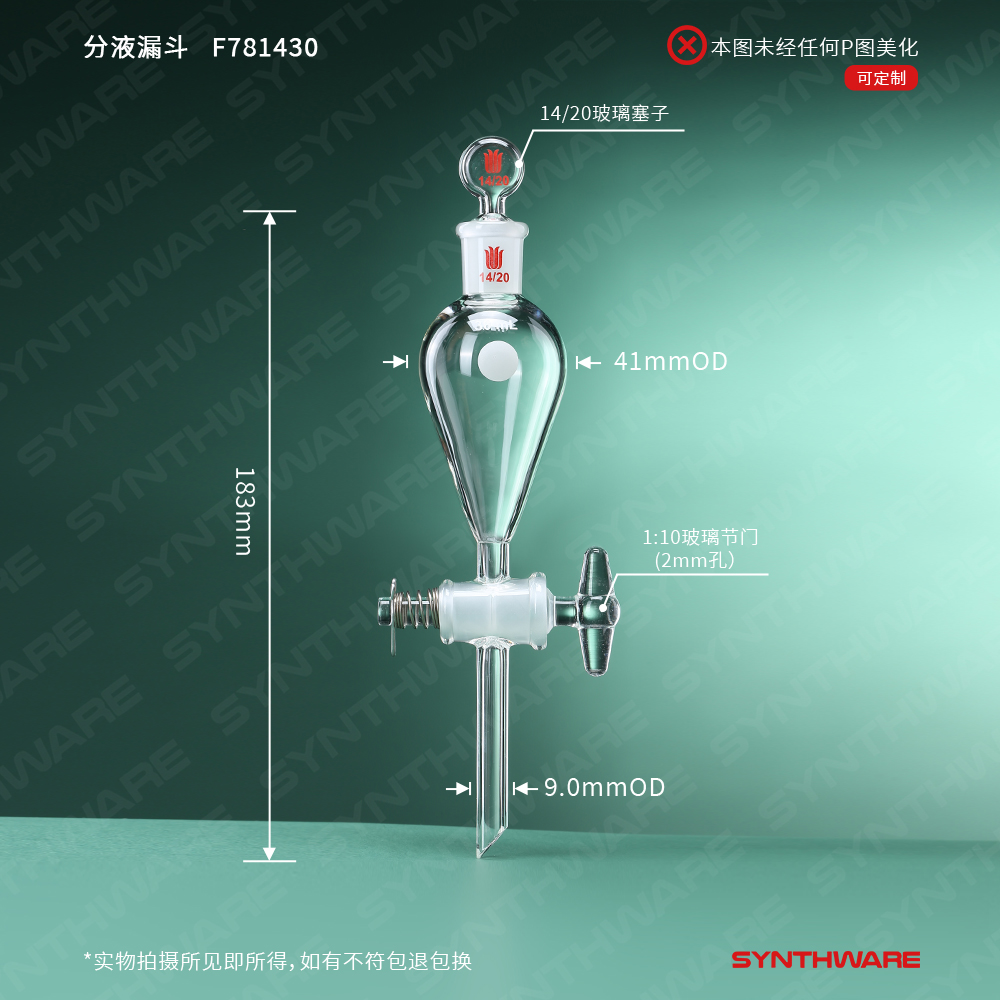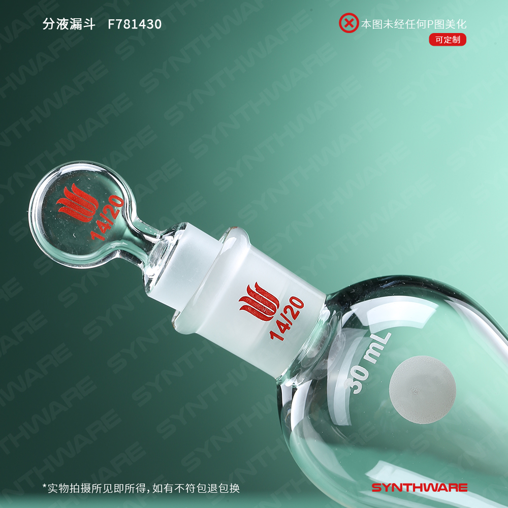 分液漏斗,玻璃节门,30ml,14/20玻璃塞子 F781430