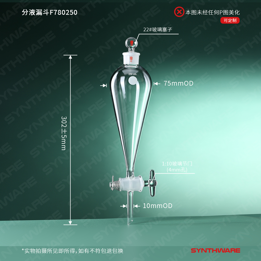 分液漏斗,玻璃节门,250ml,22#玻璃塞子 F780250