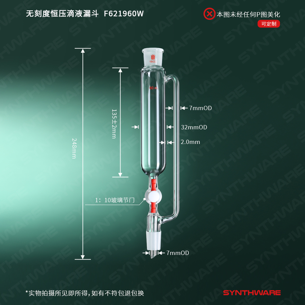 无刻度恒压滴液漏斗,60ml,19/22 F621960W