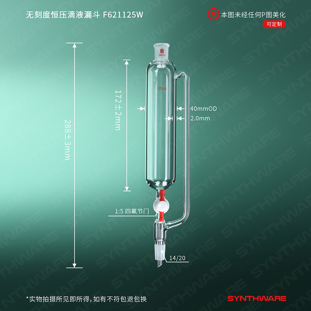 无刻度恒压滴液漏斗,125ml,14/20 F621125W