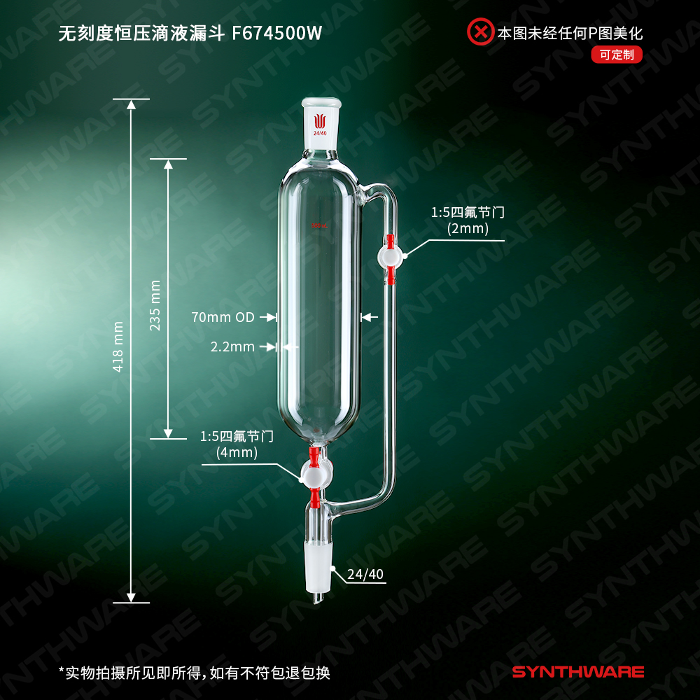 无刻度恒压滴液漏斗,双四氟节门,500ml,29/42 F678500W