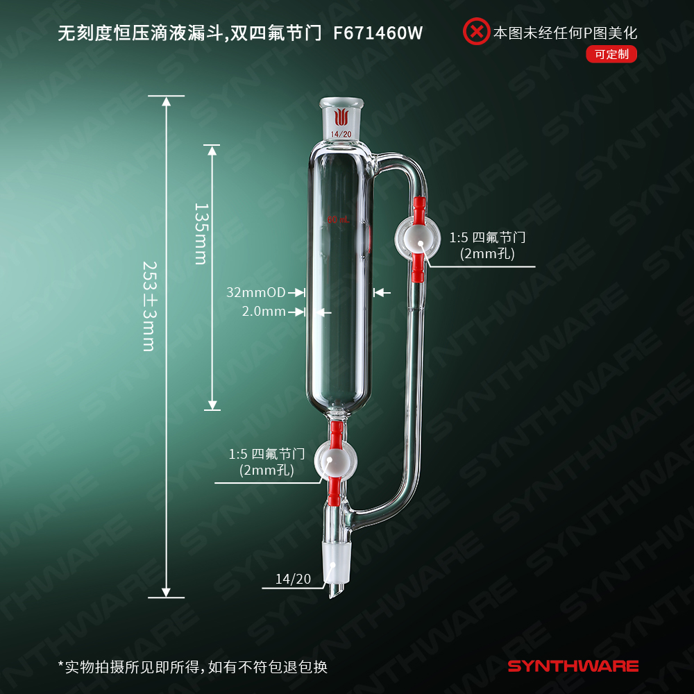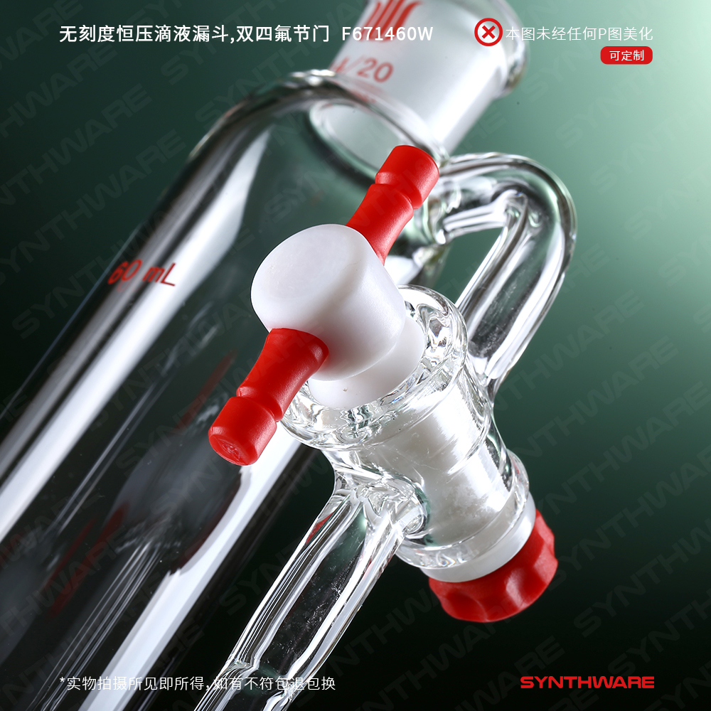 无刻度恒压滴液漏斗,双四氟节门,60ml,14/20 F671460W