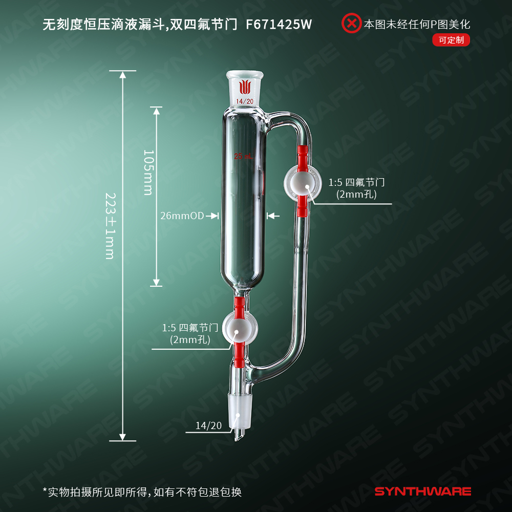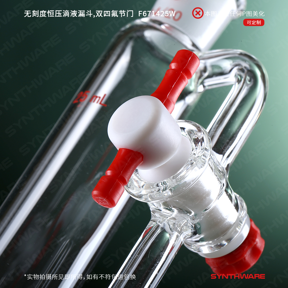 无刻度恒压滴液漏斗,双四氟节门,25ml,14/20 F671425W
