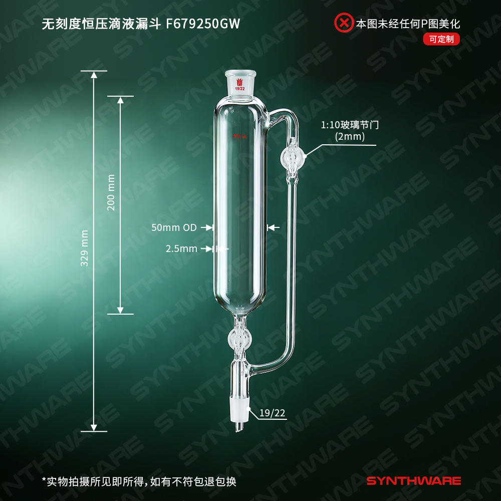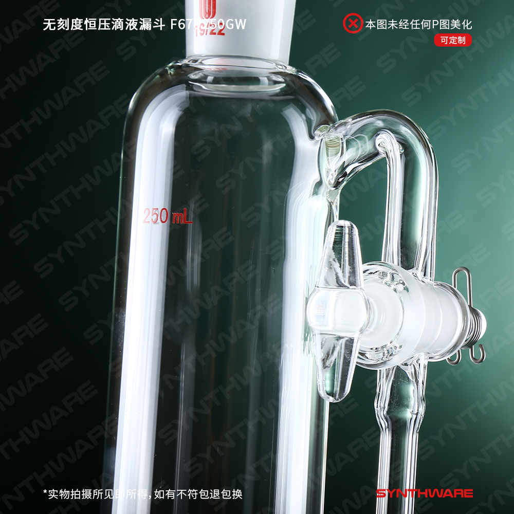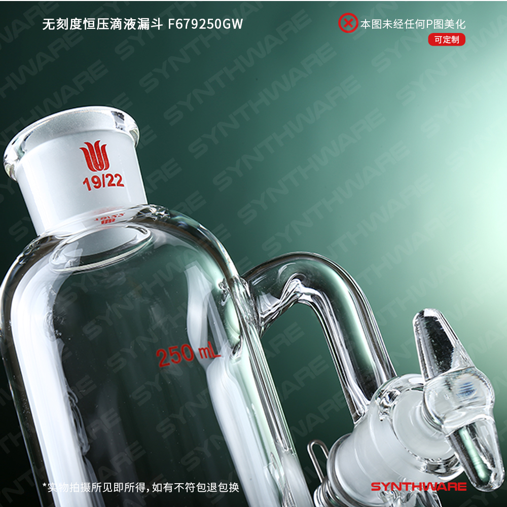 无刻度恒压滴液漏斗,双玻璃节门,250ml,19/22 F679250GW