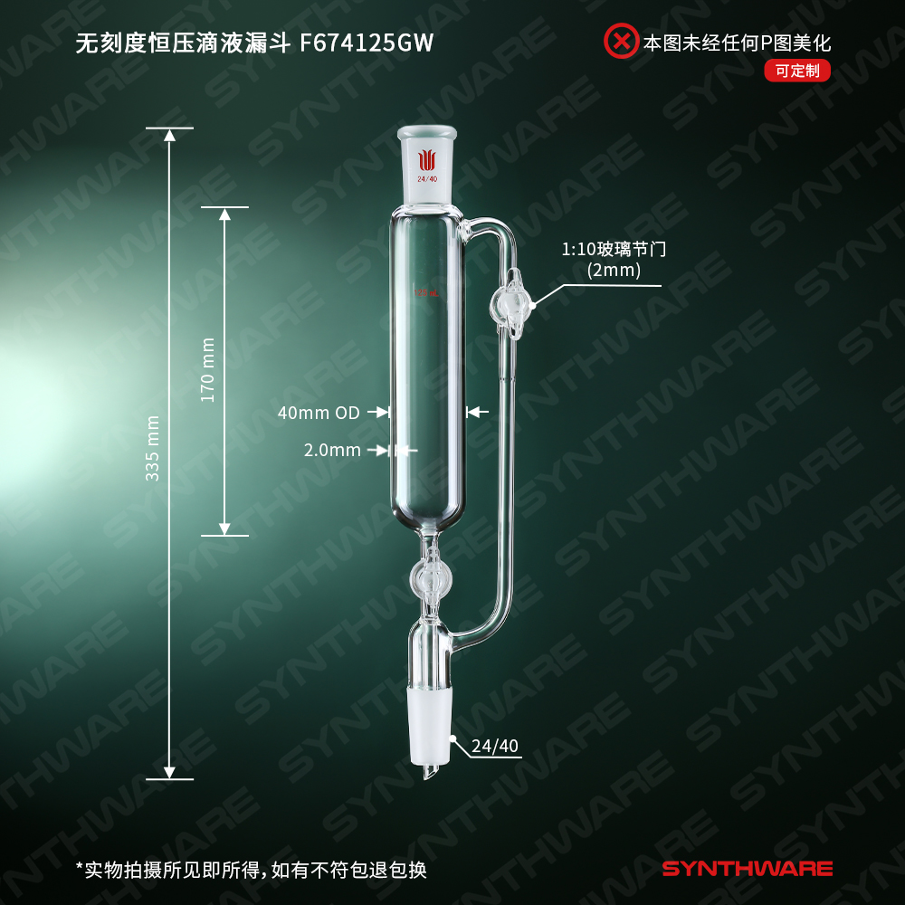 无刻度恒压滴液漏斗,双玻璃节门,125ml,24/40 F674125GW