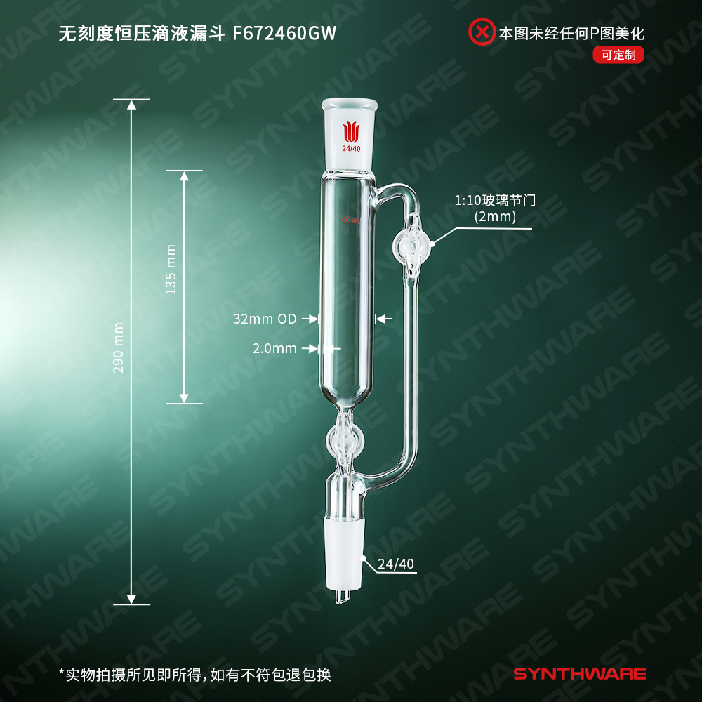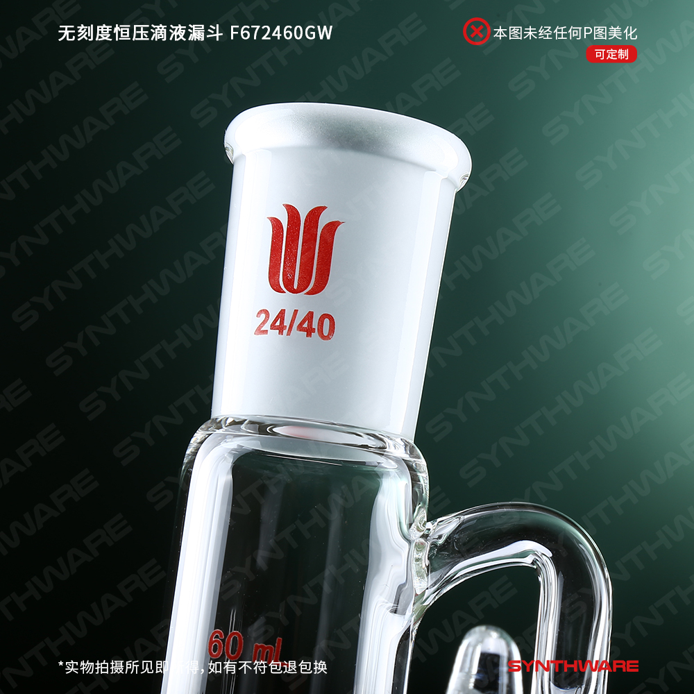 无刻度恒压滴液漏斗,双玻璃节门,60ml,24/40 F672460GW