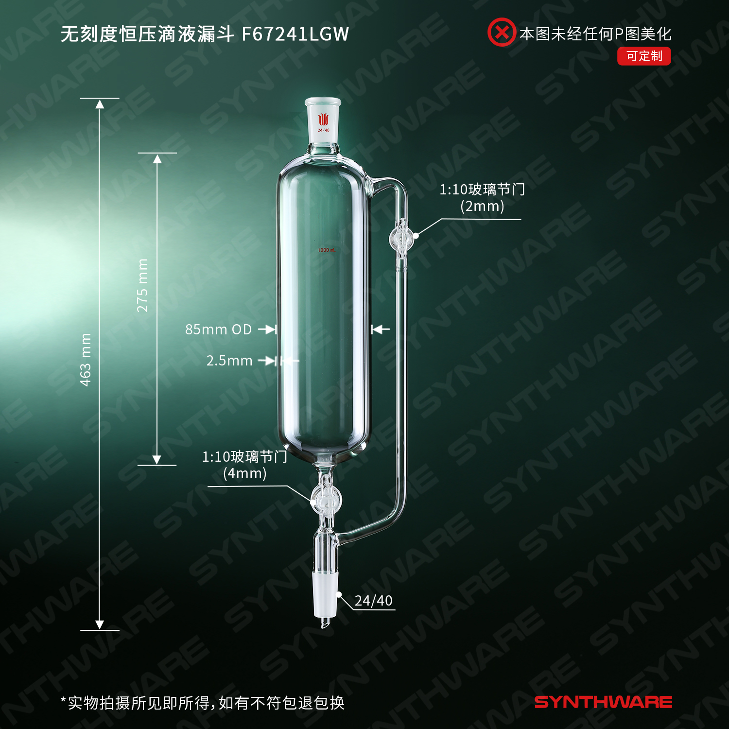无刻度恒压滴液漏斗,双玻璃节门,1000ml,24/40 F67241LGW