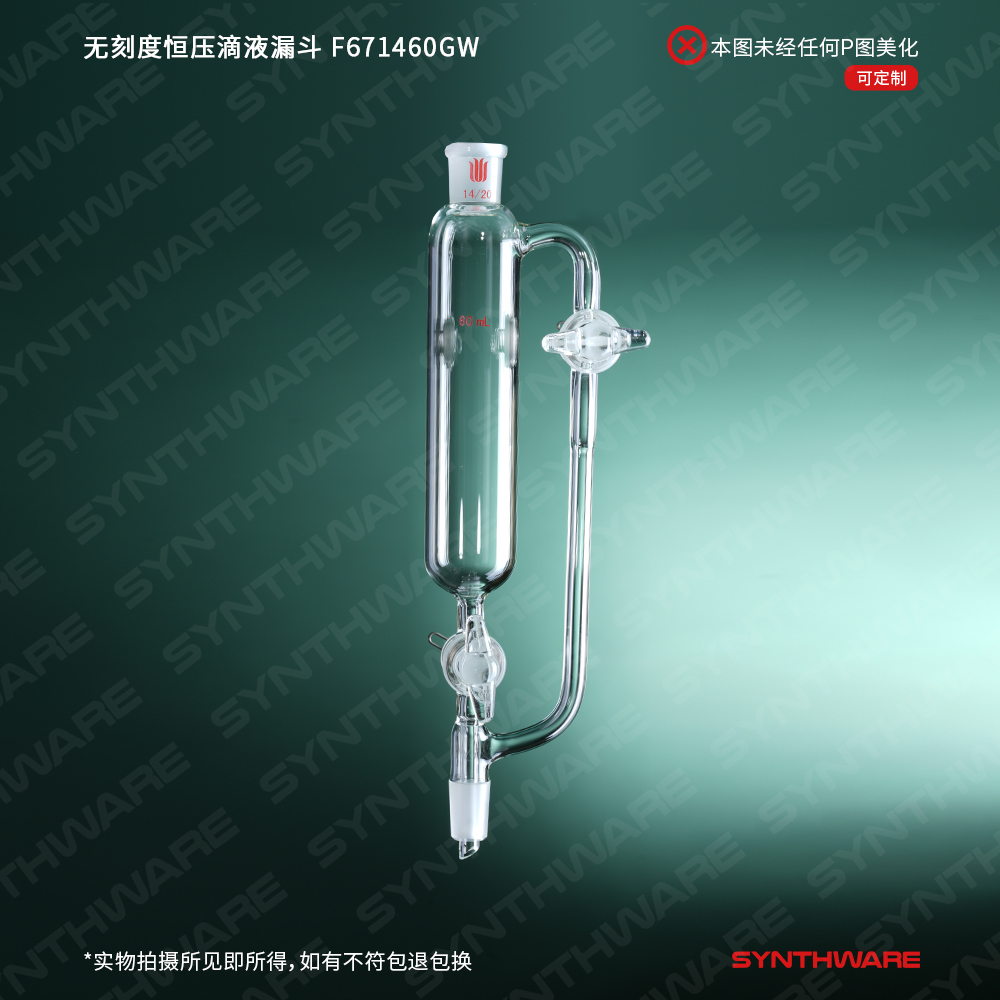 无刻度恒压滴液漏斗,双玻璃节门,60ml,14/20 F671460GW
