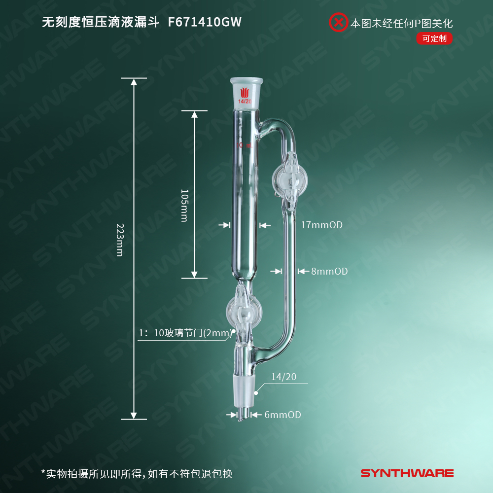 无刻度恒压滴液漏斗,双玻璃节门,10ml,14/20 F671410GW