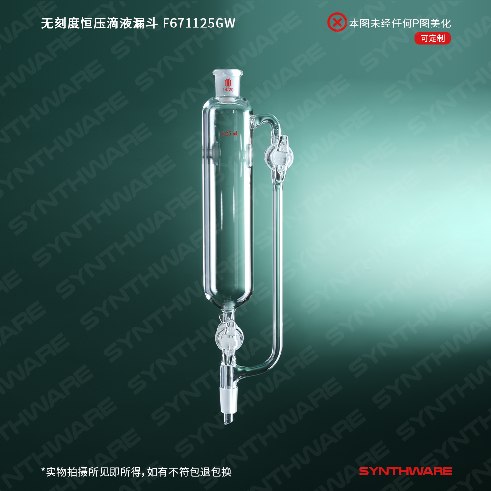 无刻度恒压滴液漏斗,双玻璃节门,125ml,14/20 F671125GW