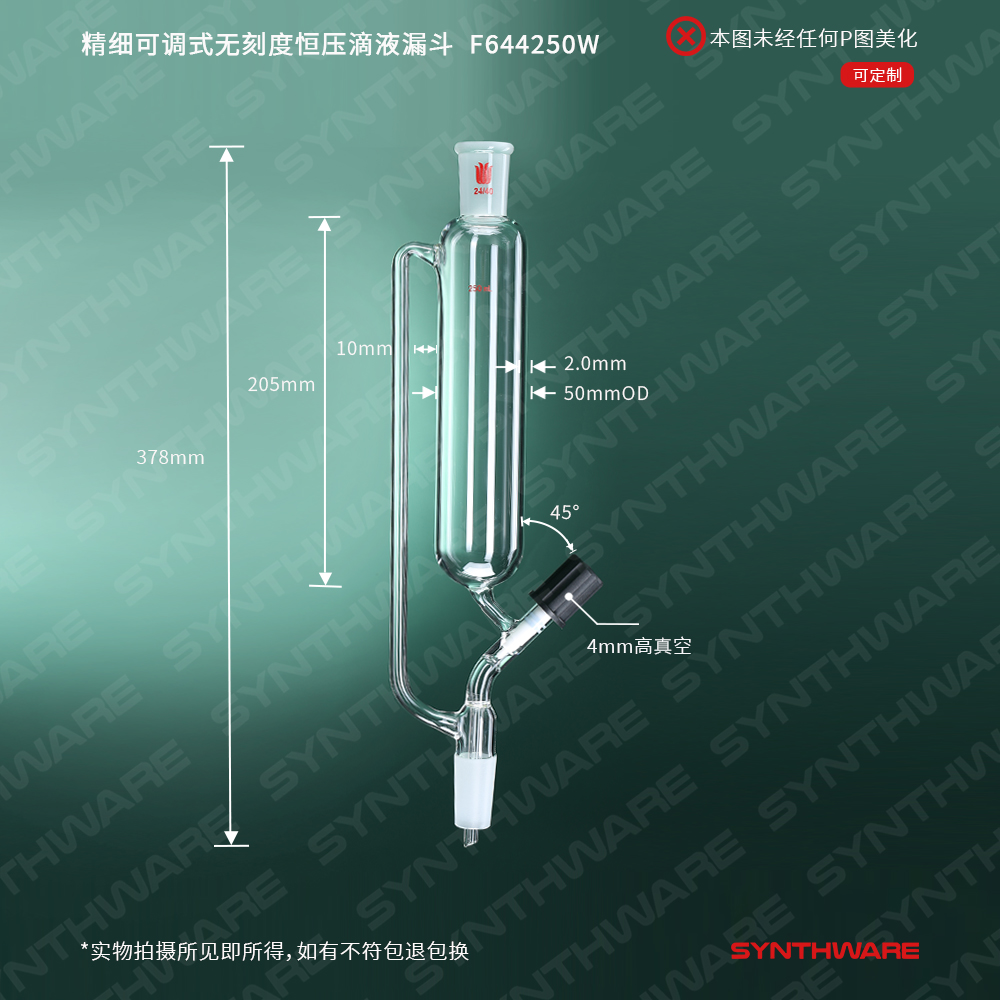精细可调式无刻度恒压滴液漏斗,4mm高真空阀,60ml,24/40 F642460W