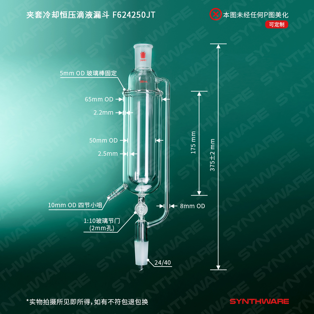 夹套冷却恒压滴液漏斗,磨口:24/40,容量:250ml F624250JT