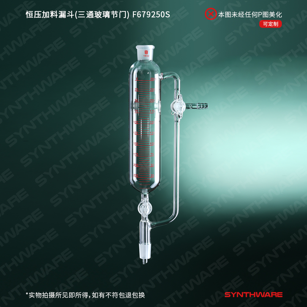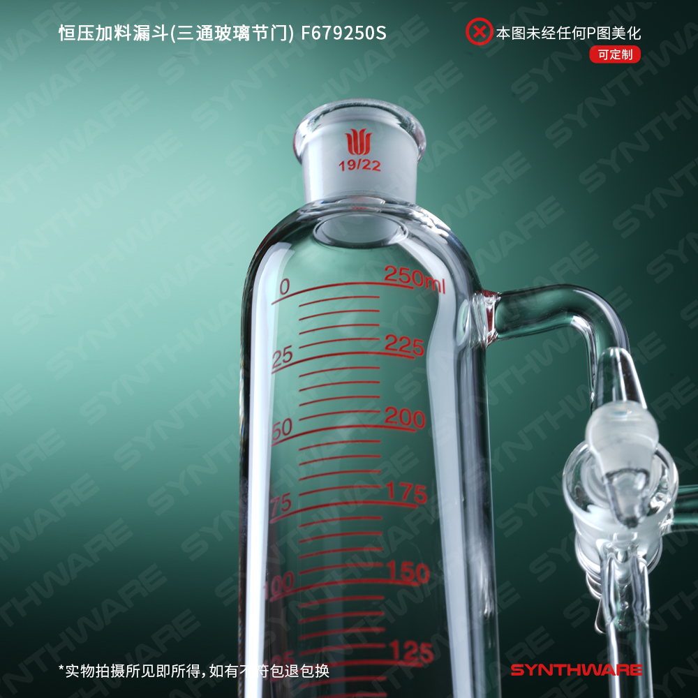 恒压加料漏斗(三通玻璃节门),磨口:19/22,容量:250ml F679250S