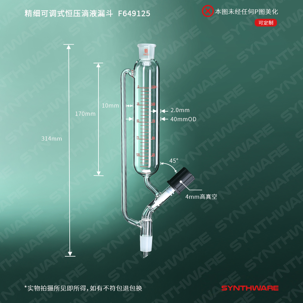 精细可调式恒压滴液漏斗,高真空阀,125ml,24/40 F644125